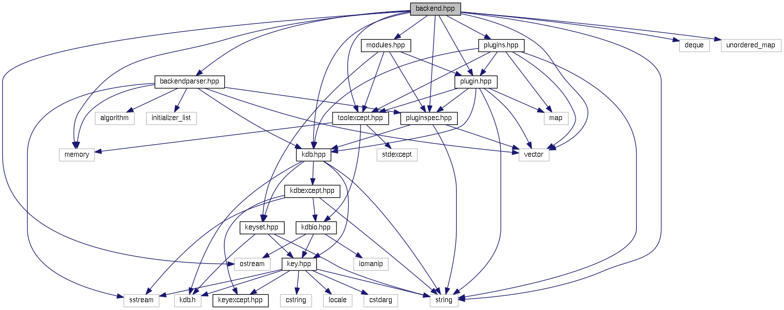 #include <backendparser.hpp>#include <modules.hpp>#include <plugin.hpp>#include <plugins.hpp>#include <pluginspec.hpp>#include <toolexcept.hpp>#include <deque>#include <memory>#include <ostream>#include <string>#include <unordered_map>#include <vector>#include <kdb.hpp>