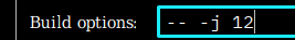 which, in this case, starts 12 build jobs in parallel. For optimal performance this value should represent the number of available cores of your CPU + few extra jobs.