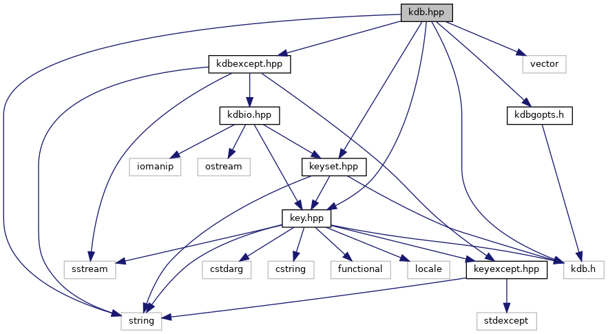 Include dependency graph for kdb.hpp: